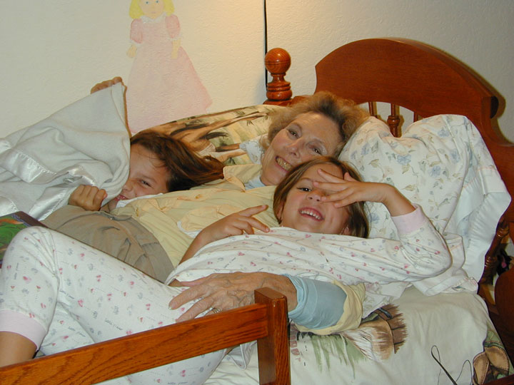 second picture is of the two girls in bed with Grammie (Laura).
